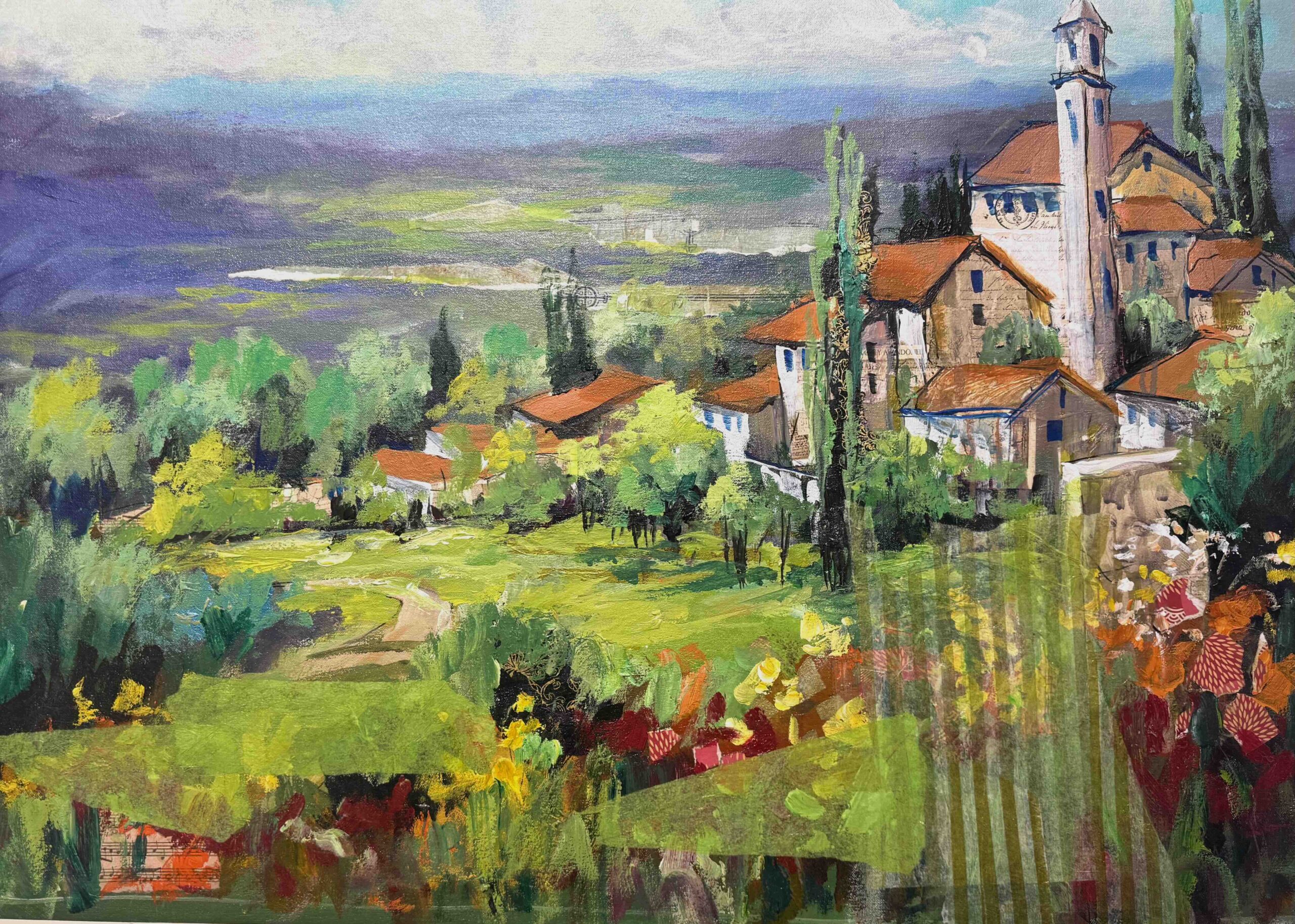 TUSCAN LANDSCAPE, is an original acrylic mixed media painting on canvas. Size: 18×24″ Peso Price: 36,000.00